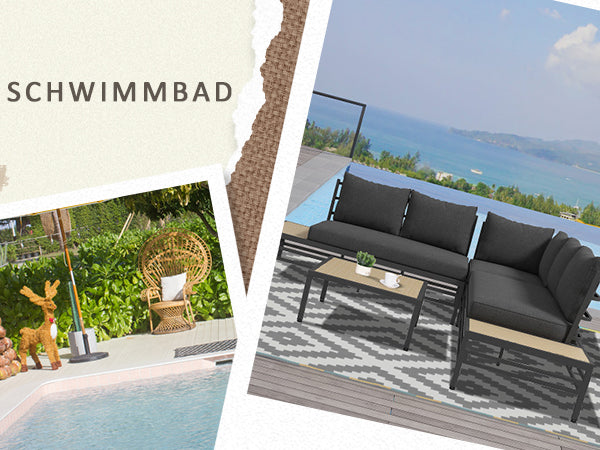 - ✔ Der Aluminiumrahmen der Gartengarnitur garantiert Rostbeständigkeit und Langlebigkeit