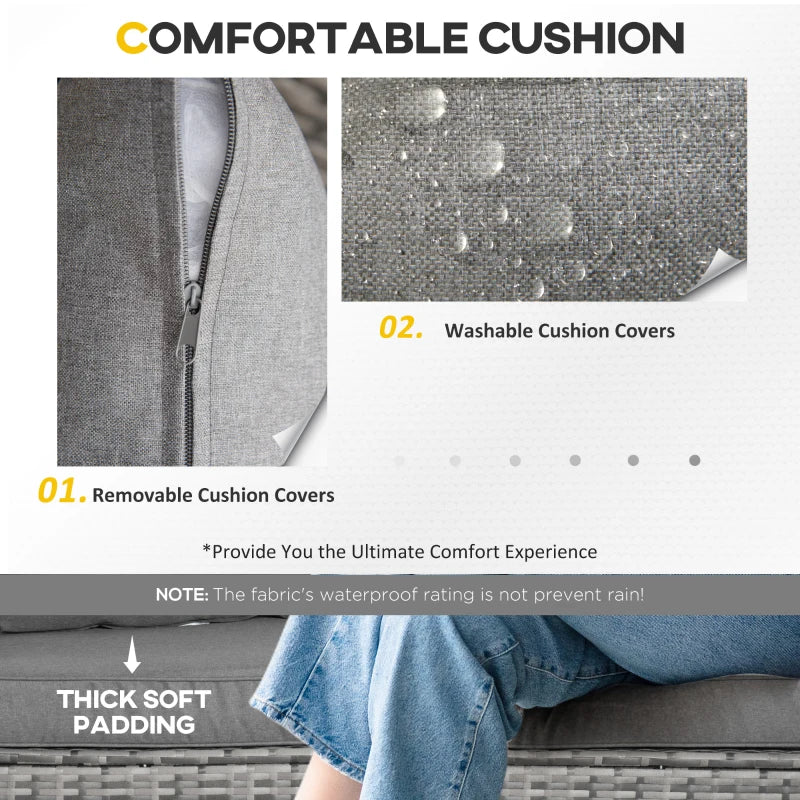 Verschönern Sie Ihren Garten mit diesem 7-teiligen Rattan Lounge Set von Outsunny und machen Sie den Außenbereich Ihres Hauses genauso einladend wie den Innenbereich. Gebaut mit einem Stahlrahmen, der mit Lounge Gartenmöbel Set überzogen ist, um Haltbarkeit und Schutz zu gewährleisten. Dekorativ und funktional, schafft eine einladende Umgebung, die Sie und Ihre Familie das ganze Jahr über nutzen wollen.