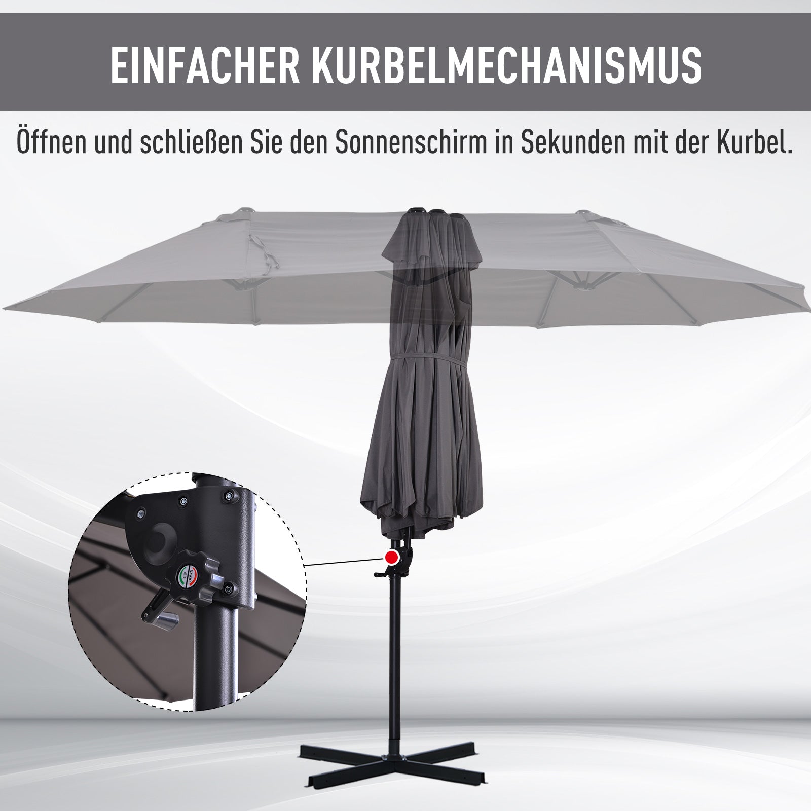 - ✔ Mit einer praktischen Handkurbel lässt sich der Schirm einfach öffnen und schließen