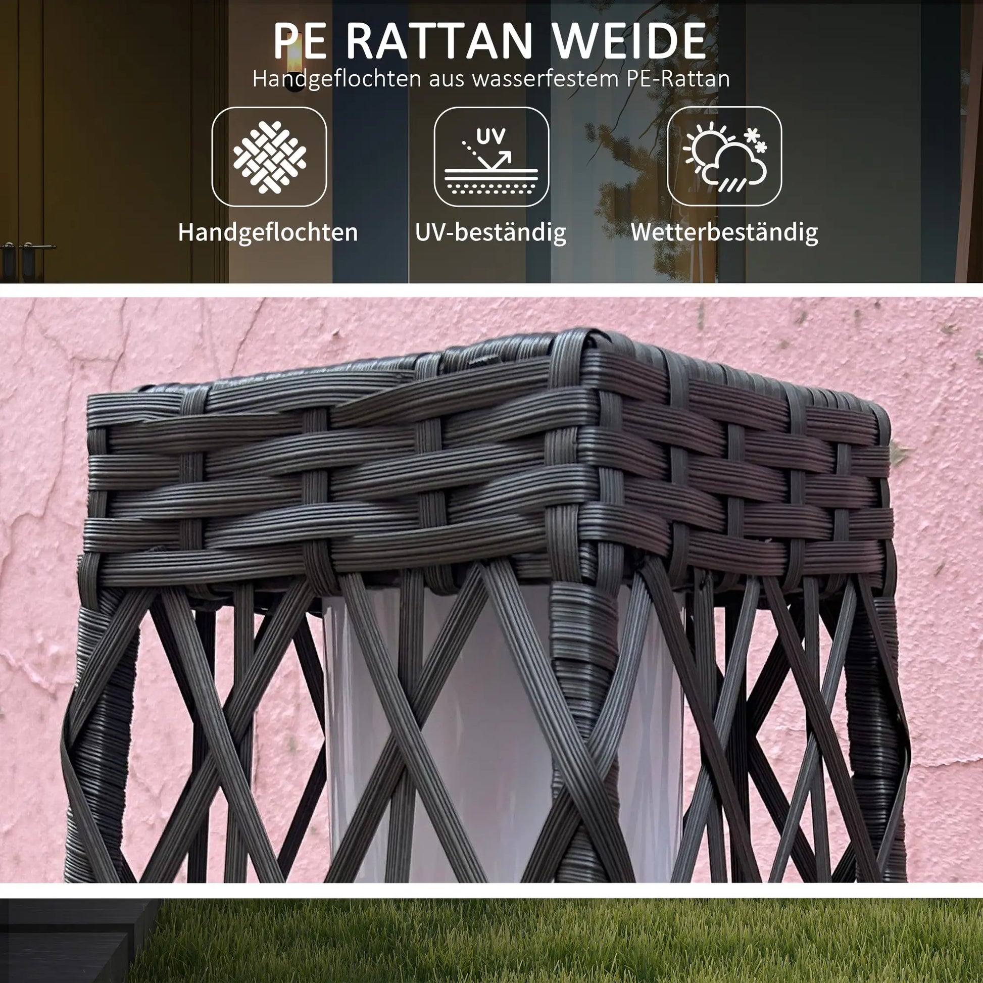 - ✔ Materialien: Stahl, PE-Rattan