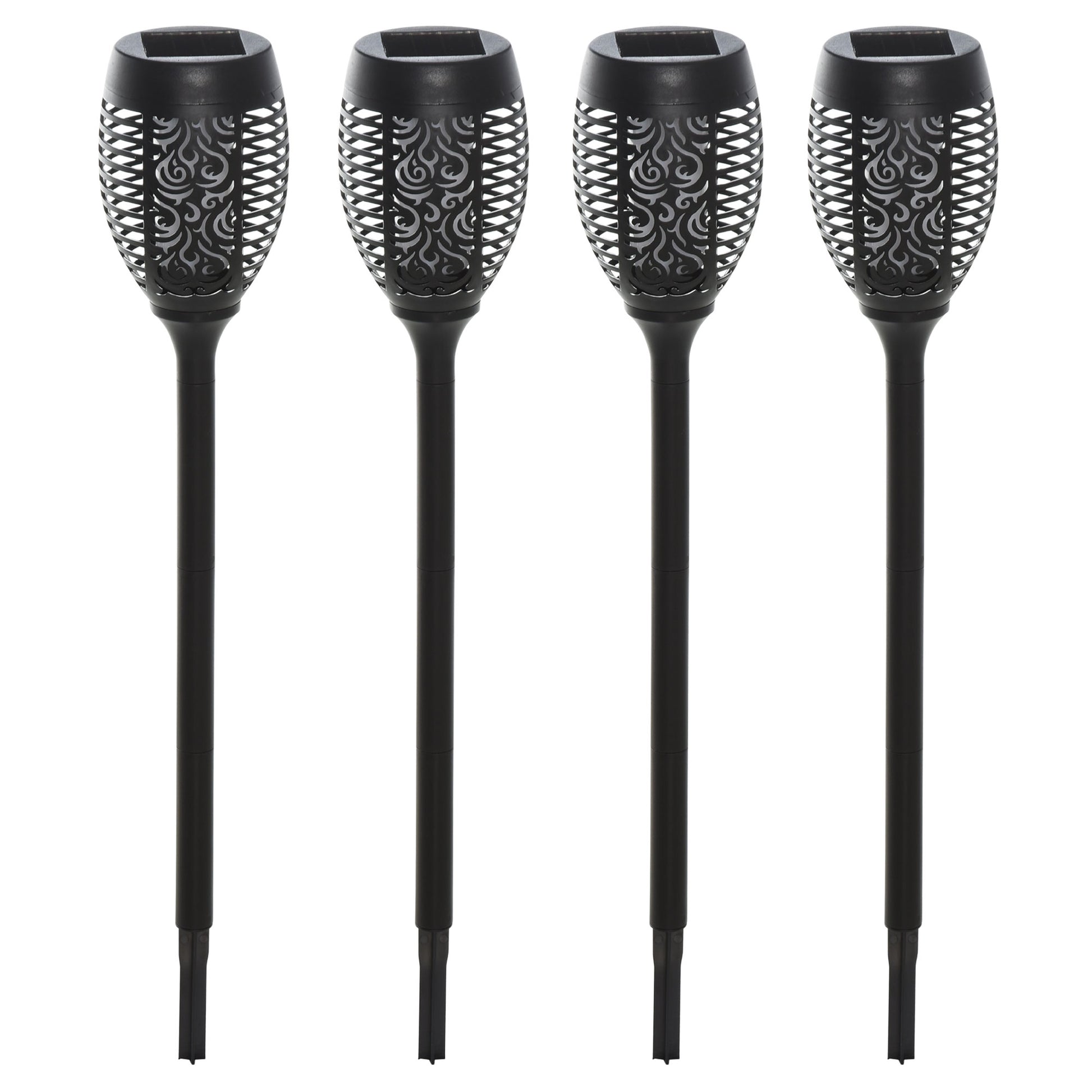 Die Solarleuchten im 4er-Set verbreiten ein warmes, flackerndes Licht in Ihrem Garten oder auf dem Balkon. Sie sind mit langlebigen LED-Birnen ausgestattet und werden mit Solarenergie betrieben. Bei voller Aufladung sorgen die vier Leuchten sechs bis acht Stunden lang für ein stimmungsvolles Licht in Ihrem Garten oder auf der Terrasse – eine ideale Party-Beleuchtung.