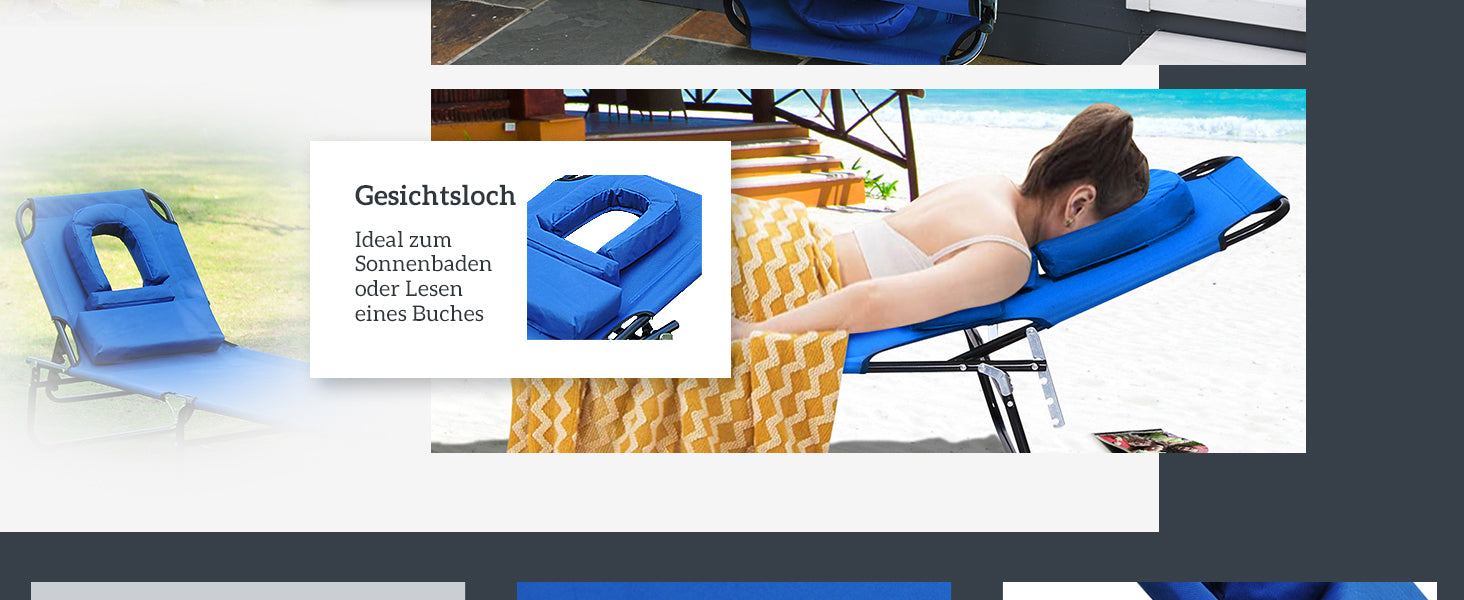 - ✔ Die Liege eignet sich optimal zum bäuchlings liegen, so können sie sich ganz bequem sonnen oder Bücher lesen