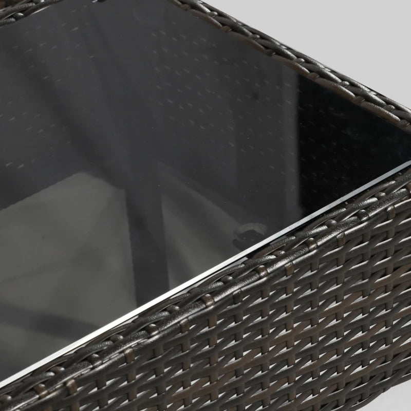 - ✔ Material: Stahlrahmen, PE-Rattan, Polyester, gehärtetes Glas