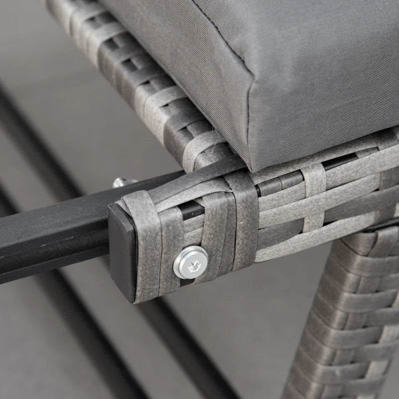 Dieses moderne Rattan-Sofa von Outsunny zeichnet sich durch ein schlichtes, zeitloses Design und eine hochwertige Verarbeitung aus. Dank des robusten, rostfreien Stahlrahmens und der widerstandsfähigen Verkleidung aus wetterfestem, künstlichem Rattan ist dieses Gartensofa ideal für die ganzjährige Verwendung im Freien geeignet. Die Armlehnen lassen sich einfach herunterklappen, sodass Sie sich komfortabel hinlegen oder die Seitenteile als praktische Ablageflächen nutzen können.