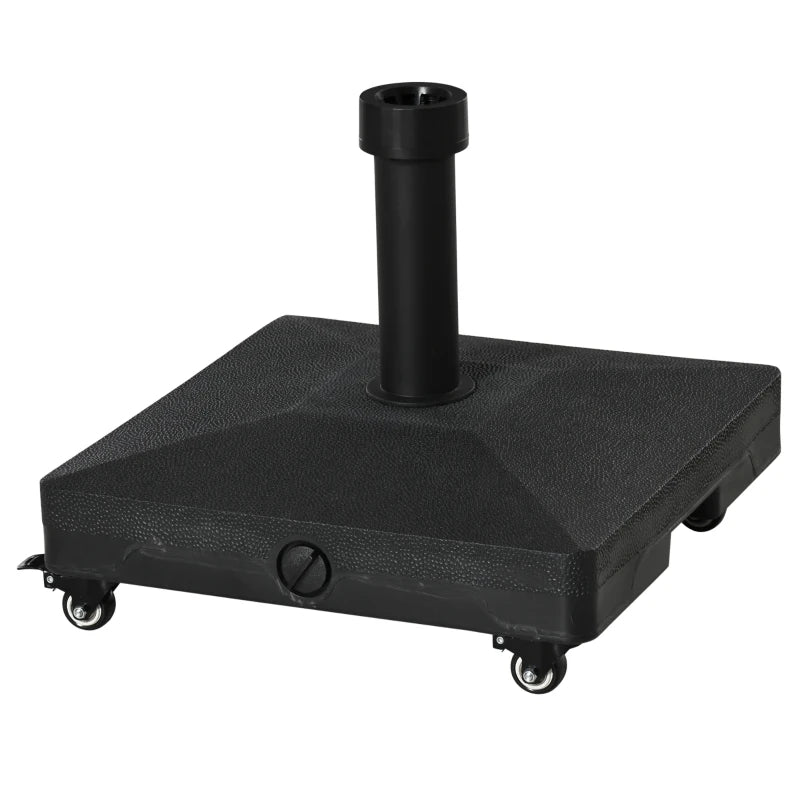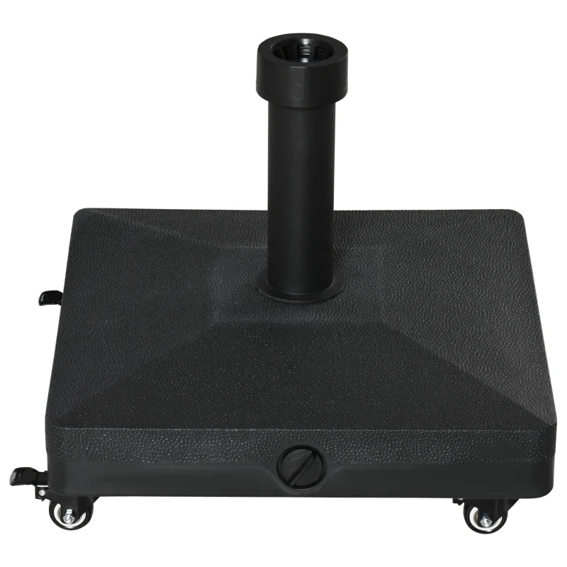 Sorgen Sie dafür, dass Ihr Regenschirm mit diesem Gartenschirmfuß von Outsunny immer fest an seinem Platz steht. Er besteht aus haltbarem, robustem Kunststoff und muss mit Wasser oder Sand gefüllt werden, um das Gewicht zu erhöhen und im Freien genügend Stabilität zu gewährleisten. 4 leichtgängige Rädern verleihen ihm bei Bedarf eine hohe Mobilität. Egal, ob Sie ihn im Garten, auf der Terrasse oder am Pool verwenden möchten, dies ist der richtige Schirmfuß für Sie.