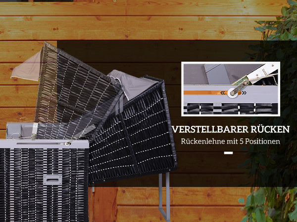 Strandkorb für 2 Personen mit neigbarer Rücklehne 118 x 79 x 150cm
